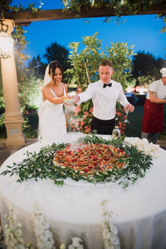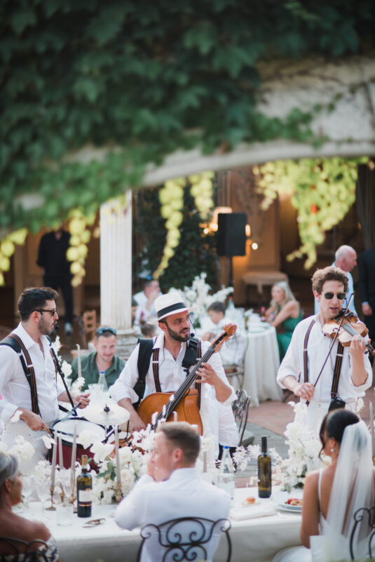 Guests were welcomed in true Italian fashion, enjoying an immersive culinary experience beneath the open sky, where the atmosphere leaned into Tuscany’s signature charm—slow-paced, stylish, and deeply convivial. A vintage car arrival added a cinematic touch, setting the tone for a day rooted in timeless romance and destination allure. As the evening unfolded, Ibiza’s Ellie Sax delivered a high-energy performance, transforming the celebration into an unforgettable late-night moment that blended European glamour with the relaxed spirit of a Tuscan destination wedding.