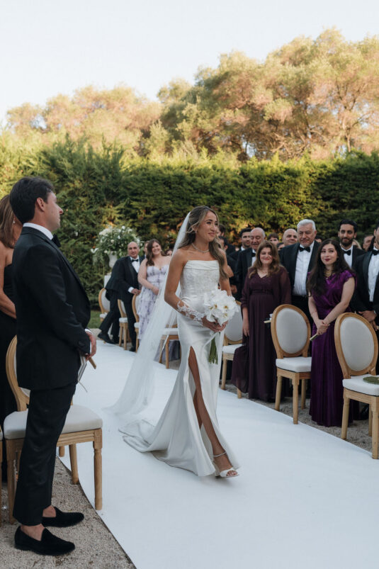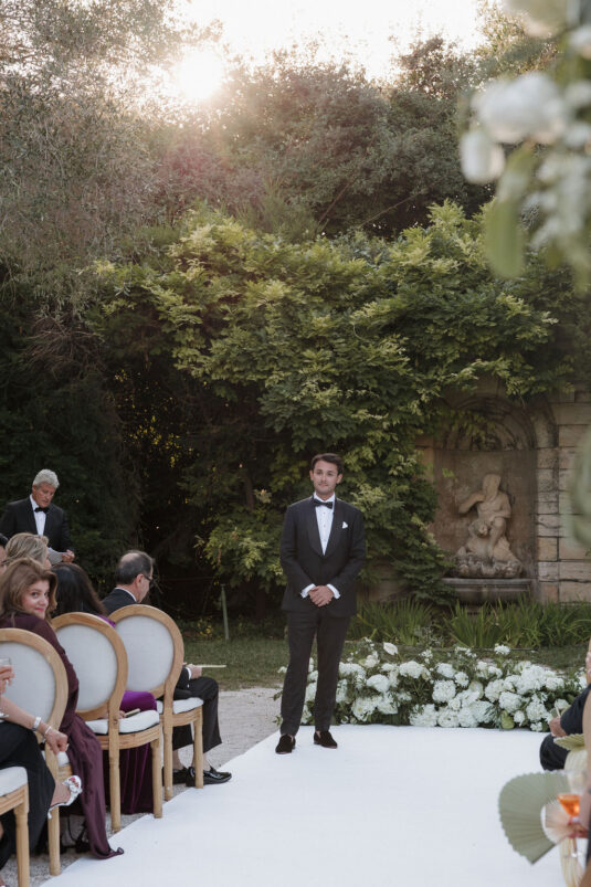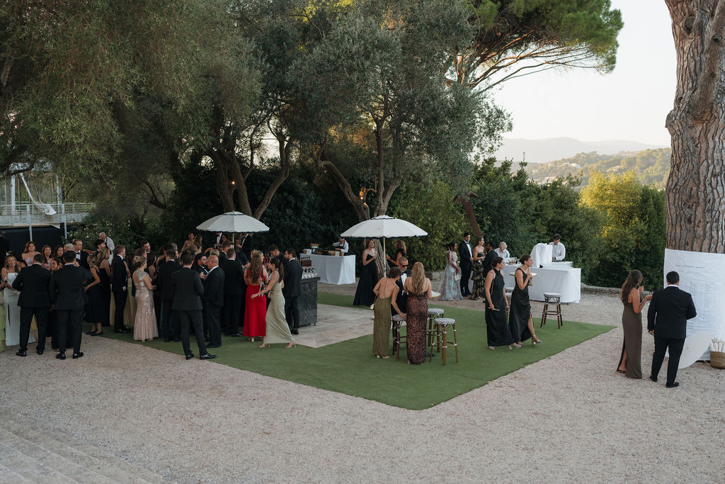 Their story, which began at just eleven years old in the Chicago suburbs, added emotional depth to the celebration. After more than a decade together—spanning university years, semesters abroad in Berlin and Barcelona, and long-distance chapters between Boston and New York—the couple envisioned a French Riviera destination wedding that would double as a shared travel experience for their guests. The festivities began with a chic beachfront welcome party in Cannes, allowing everyone to settle into the Riviera lifestyle before gathering for the garden ceremony at Bastide de Roy.
