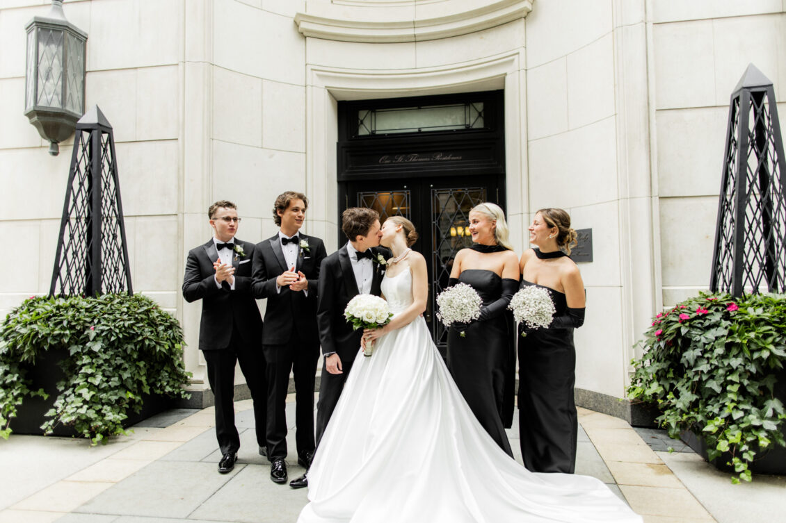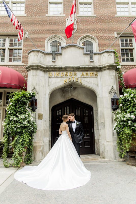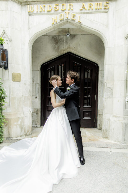 captured the celebration with a balance of editorial composition and organic storytelling, reflecting the same refined sensibility as the design. Portraits leaned into architectural backdrops and natural light, while candid moments highlighted the couple’s connection and the intimate energy of the day. The result was a visual narrative that elevated the timeless elegance of this Windsor Arms Toronto wedding, blending polished imagery with genuine emotion.