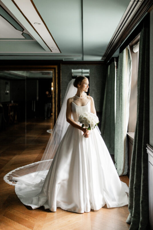 Set within one of the city’s most iconic boutique hotels, Marguerite and Jordan’s celebration unfolded as a refined and effortlessly elegant Windsor Arms Toronto wedding, where classic black-tie style met modern restraint. The couple embraced a timeless palette of white, green, silver, and soft cream, allowing subtle layers of texture and tone to shape the atmosphere. With its historic architecture, intimate scale, and soft natural light, the Windsor Arms provided the perfect canvas for a Windsor Arms Toronto wedding rooted in understated sophistication.