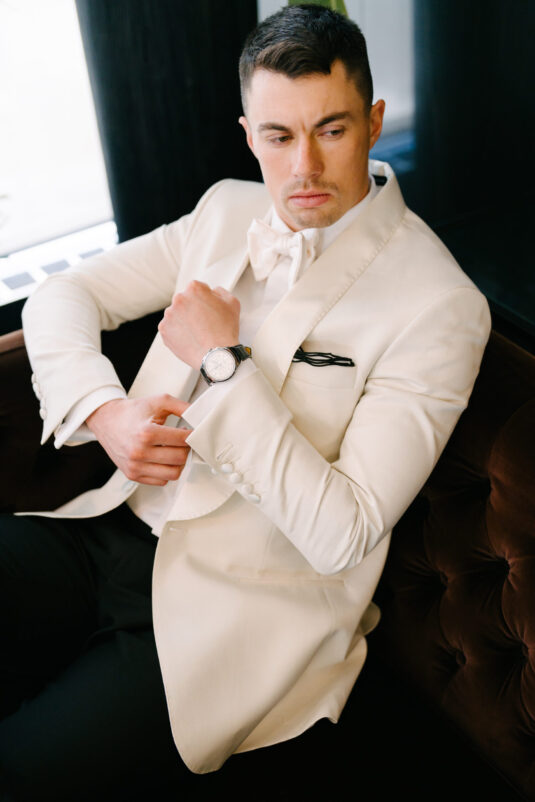 , the shoot presents five sartorial moments that explore how tailoring can define each chapter of the wedding day. From ceremony to celebration, modern groom fashion is no longer one-note – it’s layered, expressive, and deeply personal. Paired with iconic Breitling timepieces, each look underscores the idea that detail is everything, and that true style lies in the finishing touches.