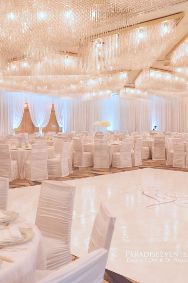 Crystal Pavilion Ballroom: A showstopping space with a dazzling crystal canopy, 2,400 sq. ft. foyer, and room for up to 600 guests—perfect for cocktails, dancing, and elegant receptions.