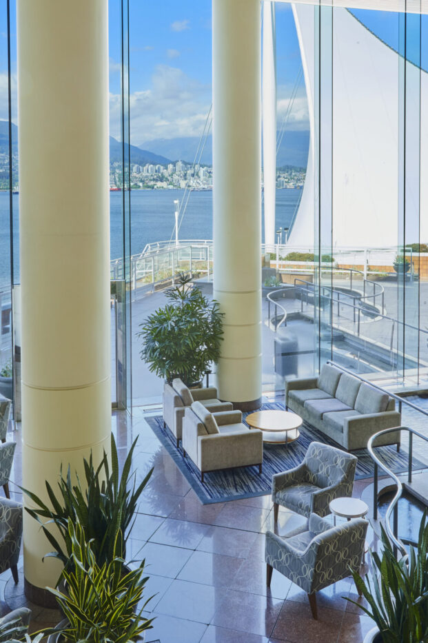 Ocean View Suites: Luxurious rooms with floor-to-ceiling windows that showcase unobstructed views of the waterfront and North Shore mountains.