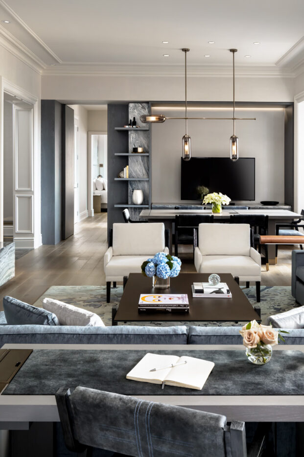 The St. Regis Ballroom is grand in scale and function with opulent modern décor and a north view from the 10th floor. The St. Regis Ballroom can accommodate up to 180 seated guests with a dance floor or 300 guests for a standing reception.