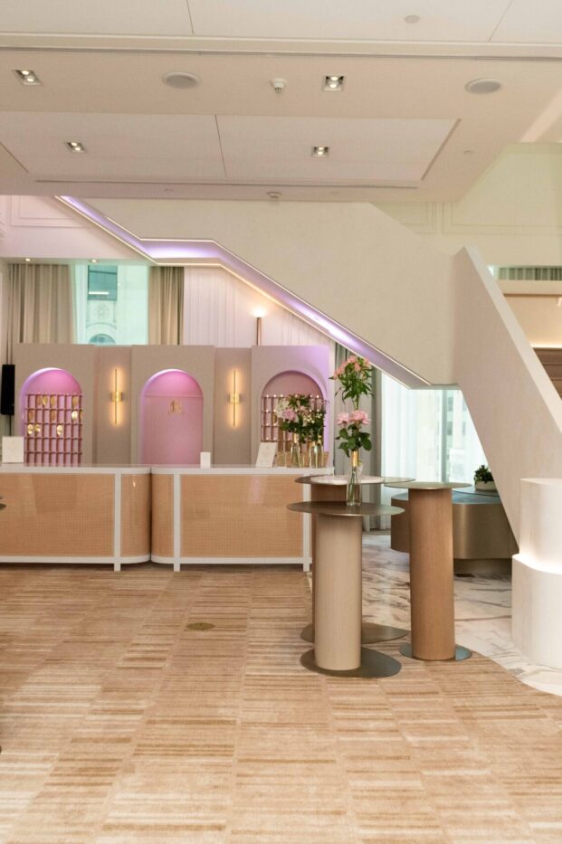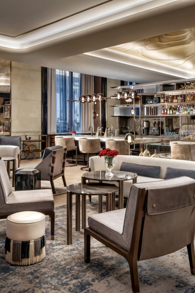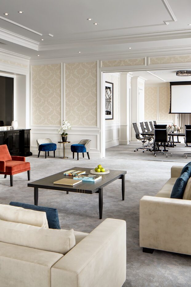 The Astor Ballroom offers a grand staircase and soaring ceilings which complement the ornate detail of this north-facing 9th-floor event space at The St. Regis Toronto. This elegantly designed ballroom accommodates up to 140 seated guests with a dance floor or 240 guests for a standing reception.